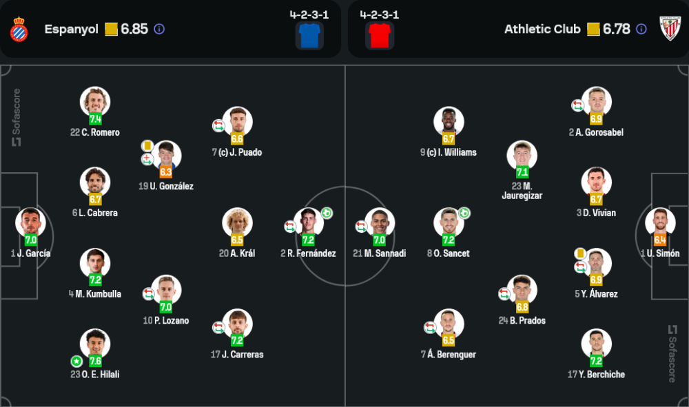 โอมาร์ เอล ฮิลาลี โชว์ฟอร์มโดดเด่นในแนวรับของ เอสปันญ่อล โดยตัดเกมสำคัญหลายครั้ง และเป็นหนึ่งในผู้เล่นที่ทำให้ทีมสามารถแบ่งแต้มจากเกมนี้ได้