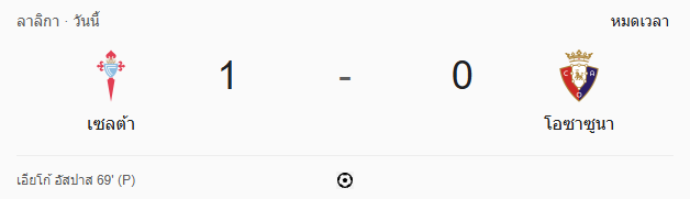 - นาทีที่ 47 กรรมการเป่าหมดครึ่งแรก เซลต้า บีโก้ เสมอ โอซาซูน่า 0-0