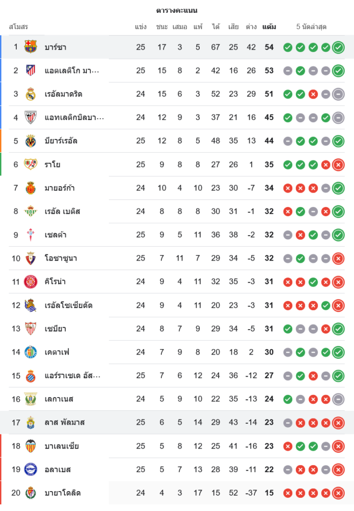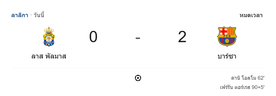 จาก : ผลบอลสด ลาลิกา 2024 ระหว่าง ลาส พัลมาส 0-2 บาร์เซโลน่า วันนี้ 23/2/68 – บ้านกีฬา