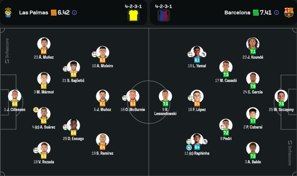 บาร์เซโลน่า ใช้ระบบ 4-2-3-1 ที่เน้นการครองบอลและการต่อบอลที่แม่นยำ ขณะที่ ลาส พัลมาส เน้นตั้งรับและรอสวนกลับ ซึ่งไม่สามารถเจาะแนวรับของทีมเยือนได้ การเคลื่อนที่ของ เปดรี และ มิเกล คาซาโด ทำให้แดนกลางของบาร์ซ่ามีความไหลลื่นและสามารถควบคุมจังหวะเกมได้ตลอดทั้งแมตช์
