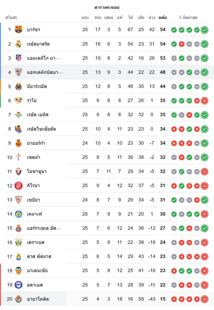 จาก : ผลบอลสด ลาลิกา 2024 ระหว่าง แอธเลติก บิลเบา 7-1 เรอัล บายาโดลิด วันนี้ 23/2/68 – บ้านกีฬา