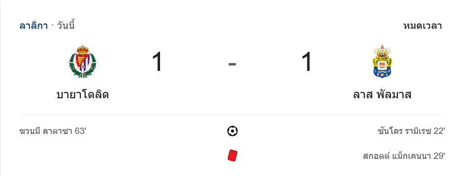 จาก : ผลบอลสด ลาลิกา 2024 ระหว่าง เรอัล บายาโดลิด 1-1 ลาส พัลมาส วันนี้ 1/3/68 – บ้านกีฬา