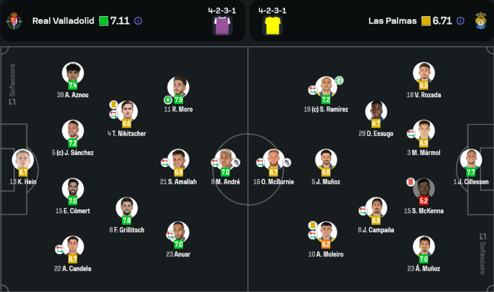 • DF: อับเดล อัซนู (7.4), เยเรย์ ซานเชซ (7.2), เอร์เย คอแมร์ต (7.0), อัลบาโร่ คันเดล่า (6.7)