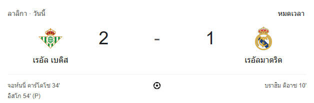 - นาทีที่ 48 กรรมการเป่าหมดครึ่งแรก เรอัล เบติส 1-1 เรอัล มาดริด