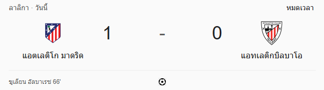 หมดเวลาการแข่งขัน แอตเลติโก มาดริด เฉือนชนะ แอธเลติก บิลเบา 1-0 คว้าสามแต้มสำคัญได้สำเร็จ