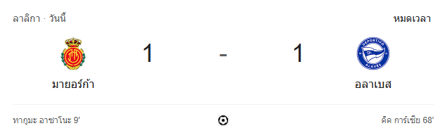 - นาทีที่ 47 กรรมการเป่าหมดครึ่งแรก มายอร์ก้า 1-0 อลาเบส