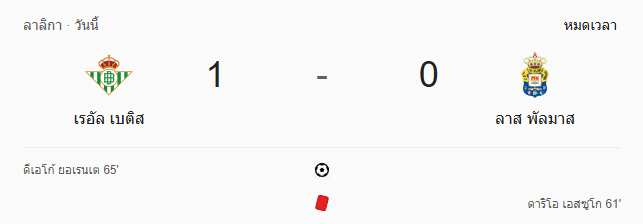 - นาทีที่ 97 กรรมการเป่าหมดเวลา เรอัล เบติส เอาชนะ ลาส พัลมาส 1-0!