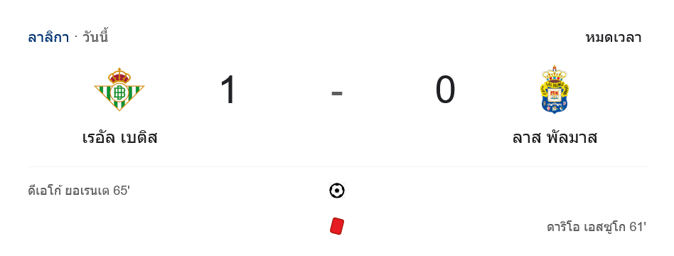 จาก : ผลบอลสด ลาลิกา 2024 ระหว่าง เรอัล เบติส 1-0 ลาส พัลมาส วันนี้ 10/3/68 – บ้านกีฬา