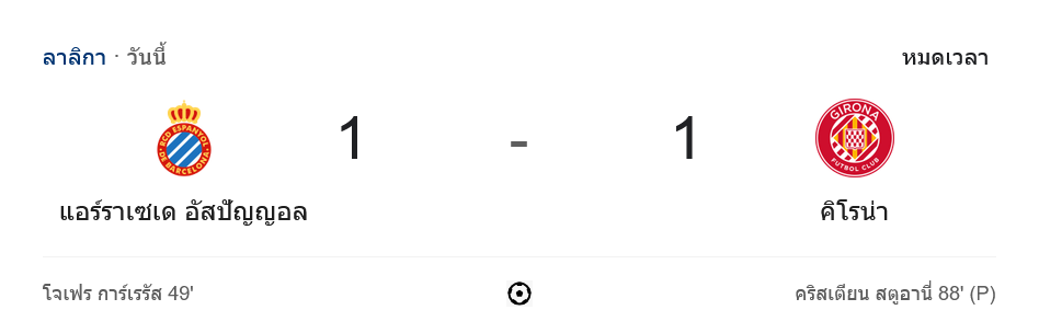 จาก : ผลบอลสด ลาลิกา 2024 ระหว่าง เอสปันญ่อล 1-1 คิโรน่า วันนี้ 11/3/68 – บ้านกีฬา