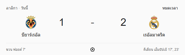 - นาทีที่ 50 กรรมการเป่าหมดครึ่งแรก บียาร์เรอัล 1-2 เรอัล มาดริด