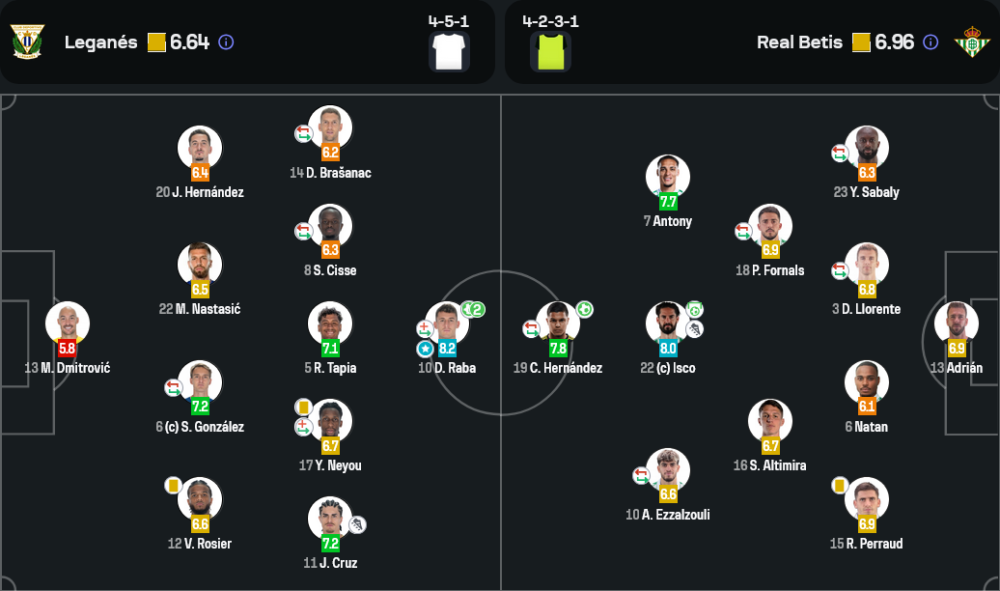 แม้ เลกาเนส จะพ่ายคาบ้าน แต่ ดาเนียล ราบา คือผู้เล่นที่ทำผลงานโดดเด่นที่สุด ยิงสองประตูสำคัญให้เจ้าถิ่นขึ้นนำ และเป็นหัวใจสำคัญของเกมรุก ด้วยคะแนน 8.2 จาก Sofascore ทำให้เขาเป็น Player of the Match ของเกมนี้