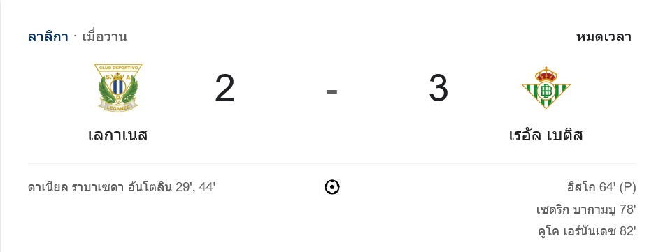 จาก : ผลบอลสด ลาลิกา 2024 ระหว่าง เลกาเนส 2-3 เรอัล เบติส วันนี้ 16/3/68 – บ้านกีฬา