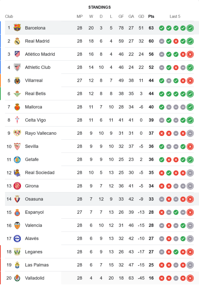 ชัยชนะนัดนี้ทำให้ บาร์เซโลน่า เก็บเพิ่มเป็น 63 แต้มจาก 28 นัด ยึดตำแหน่งจ่าฝูงต่อไปแบบแน่นหนึบ พร้อมทิ้งห่าง เรอัล มาดริด ที่อยู่อันดับ 2 ถึง 3 แต้ม ขณะที่ โอซาซูน่า ยังคงมี 33 แต้มเท่าเดิม หล่นลงไปอยู่ที่อันดับ 14 ของตาราง โดยมีแต้มเหนือโซนตกชั้นเพียง 6 คะแนน ทำให้พวกเขายังต้องลุ้นหนีตกชั้นในช่วงโค้งสุดท้ายของฤดูกาลนี้