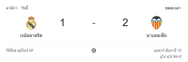 - นาที 90+8: จบเกม! เรอัล มาดริด พ่าย บาเลนเซีย คาบ้าน 1-2