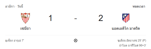 ดราม่าท้ายเกม! แอตฯ มาดริด เฉือนเซบีย่า 2-1 คาบ้าน ลาลิกาเดือดถึงวินาทีสุดท้าย
