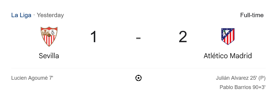 บ้านผลบอล สรุปหลังเกม ศึกเดือดแห่งลาลิกา! เซบีย่า พ่ายคาบ้านให้กับ แอตเลติโก้ มาดริด 1-2 ในเกมที่เข้มข้นถึงวินาทีสุดท้าย