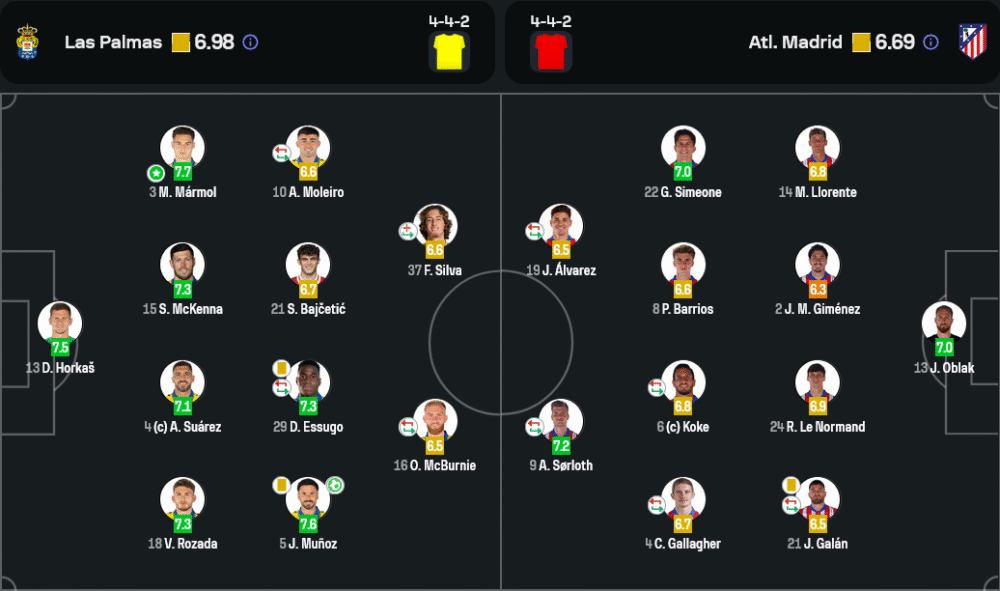 เกมนี้ ลาส พัลมาส จัดระบบ 4-4-2 ที่เน้นเกมรับเต็มรูปแบบ ตั้งโซนลึกคุมแนวรุกของแอต.มาดริดอย่างเหนียวแน่น รอจังหวะโต้กลับที่แม่นยำ ซึ่งสุดท้ายก็มาสัมฤทธิ์ผลในช่วงทดเจ็บ สวนทางกับแอต.มาดริดที่มาในระบบ 4-4-2 เช่นกันแต่เน้นการครองบอลและต่อบอลสั้นกดดันคู่แข่งอย่างต่อเนื่อง ทว่าเมื่อถึงพื้นที่สุดท้ายกลับขาดความเฉียบคม บ้านกีฬาวิเคราะห์ว่า หาก วิเคราะห์บอล เกมนี้ ลาส พัลมาส สมควรได้รับเครดิตในความมุ่งมั่นและวินัยเกมรับอย่างแท้จริง