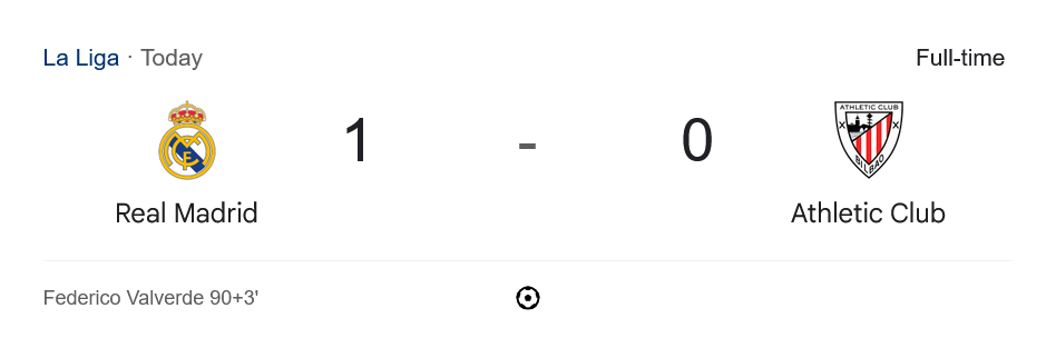 จาก : ผลบอลสด ลาลิกา 2025 ระหว่าง เรอัล มาดริด 1-0 แอธเลติก บิลเบา วันนี้ 21/4/68 – บ้านกีฬา