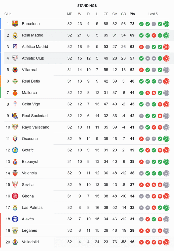 ชัยชนะนัดนี้ทำให้เรอัล มาดริดเก็บเพิ่มเป็น 69 คะแนนจาก 32 นัด ยังคงรั้งอันดับ 2 ตามหลังบาร์เซโลนา 4 แต้มในศึก ลาลิกา 2025 ด้านแอธเลติก บิลเบายังคงอยู่อันดับ 4 มี 57 แต้ม แต่เริ่มโดนทีมไล่หลังจี้เข้ามาใกล้