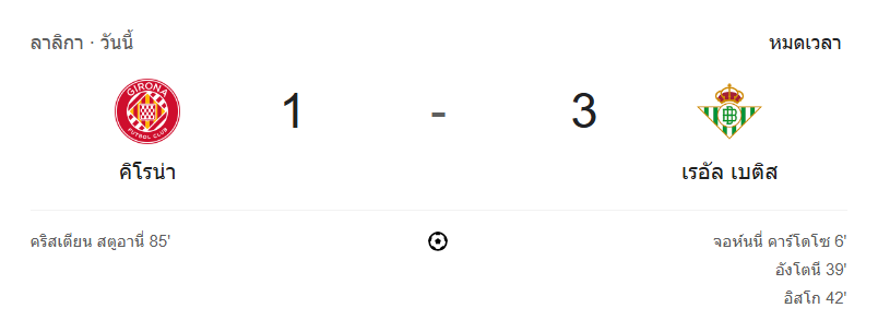 • หมดครึ่งแรก: เรอัล เบติสบุกนำคิโรน่า 3-0 ด้วยฟอร์มสุดดุดัน