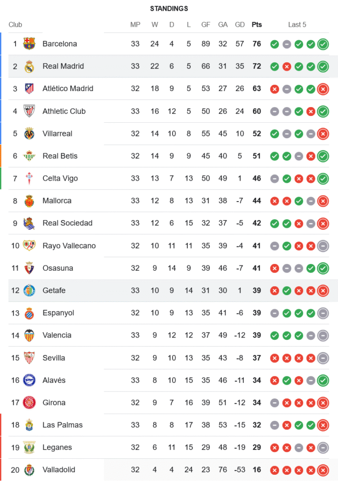 สำหรับ เรอัล มาดริด มีคิวสำคัญใน โกปา เดล เรย์ รอบชิงชนะเลิศ พบกับ บาร์เซโลนา วันที่ 27 เมษายน เวลา 03.00 น. ก่อนจะกลับมาทำศึกลาลีกาพบกับ เซลต้า บีโก้ วันที่ 4 พฤษภาคม เวลา 19.00 น. ขณะที่ เกตาเฟ่ จะบุกเยือน ราโย บาเยกาโน่ ในวันที่ 3 พฤษภาคม เวลา 02.00 น. ก่อนดวลกับ บาเลนเซีย ในวันที่ 10 พฤษภาคม เวลา 19.00 น. แฟนบอลติดตามอัปเดตได้ที่ ตารางบอล บ้านกีฬา