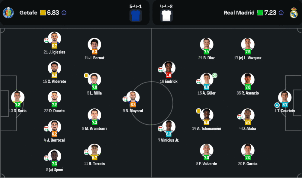 ตัวสำรองเด่น: เอดูอาร์โด้ คามาวินก้า (7.4), โรดรีโก้, จู๊ด เบลลิงแฮม, ดานี่ เซบาญอส