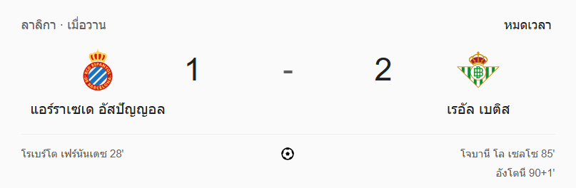 - นาทีที่ 96-98: เอสปันญ่อลพยายามโหมบุกในช่วงทดเวลา แต่โดนสกัดหมด จบเกมสุดเดือด เรอัล เบติสบุกมาเชือดเอสปันญ่อล 2-1