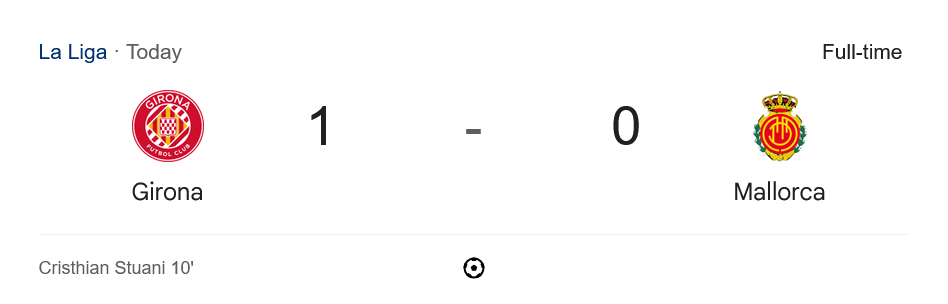 บ้านผลบอล สรุปหลังเกม ลาลิกา คิโรน่าเปิดบ้านเชือดมายอร์ก้าหวิว 1-0! สตูอานี่ยิงเร็วคว้าสามแต้มเต็ม ลุ้นหนีตายระทึก