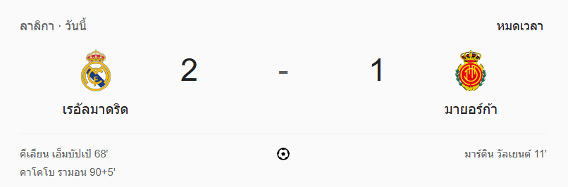 นี่คือเกมที่แสดงให้เห็นว่า เรอัล มาดริด ไม่ใช่แค่ทีมใหญ่ แต่คือทีมที่ “เล่นจนหมดลมหายใจ” แม้จะโดนนำก่อน แต่พวกเขาตามตีเสมอด้วยความกดดันมหาศาล และจบสกอร์พลิกนรกในนาทีบาปจาก คาโคโบ รามอน ส่วนมายอร์ก้าต้องอกหักแบบเจ็บลึกหลังตั้งเกมรับอย่างยอดเยี่ยมมาทั้งแมตช์ แต่ต้านไม่อยู่จริง ๆ