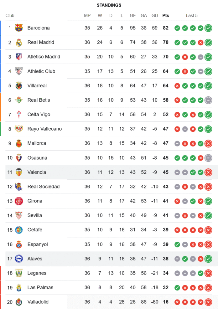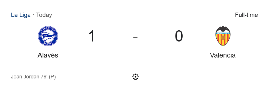 หลังจบเกมนี้ บาเลนเซียหยุดอยู่ที่อันดับ 11 มี 45 แต้มจาก 36 นัด โอกาสจบครึ่งบนของตารางเริ่มเลือนลาง ขณะที่อลาเบสเก็บ 3 แต้มล้ำค่าพุ่งขึ้นมามี 38 แต้ม อยู่อันดับ 17 หนีโซนตกชั้นเพียงแค่แต้มเดียว หากไม่พลาดใน 2 นัดสุดท้าย พวกเขามีสิทธิ์อยู่รอดในลีกสูงสุด