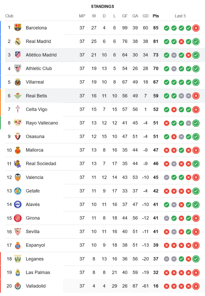ชัยชนะนัดนี้ส่งผลให้ แอตเลติโก้ มาดริด ยึดอันดับ 3 ของลาลิกาไว้เหนียวแน่นที่ 73 คะแนน นำห่างอันดับ 4 อย่างแอธเลติก คลับ อยู่ 3 แต้มเต็มก่อนเกมสุดท้าย ส่วนทางฝั่ง เรอัล เบติส แม้จะยังรั้งอันดับ 6 อยู่ในโซนยุโรป แต่ก็ต้องลุ้นเหนื่อยกับบรรดาทีมตามอย่างเซลต้า บีโก้ และราโย ที่พร้อมจี้คะแนนในเกมนัดสุดท้าย