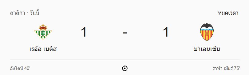 - จบเกม: เรอัล เบติส เสมอ บาเลนเซีย 1-1