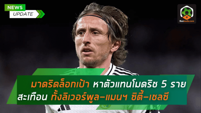 สถานการณ์ในถิ่นซานติอาโก เบร์นาเบวเริ่มร้อนแรงขึ้นเรื่อย ๆ หลัง เรอัล มาดริด เตรียมขยับหมากสำคัญในตลาดซื้อขายนักเตะซัมเมอร์นี้ เพื่อหาตัวตายตัวแทนของ ลูก้า โมดริช มิดฟิลด์ตัวเก๋าที่กำลังจะอำลาทีมอย่างเป็นทางการหลังจบฤดูกาล โดยรายงานจากสื่อใหญ่แดนกระทิงดุเผยว่า “ราชันชุดขาว” ได้วางเป้าหมายหลักไว้แล้วถึง 5 รายชื่อ ซึ่งล้วนแล้วแต่เป็นดาวดังระดับโลกที่อาจสร้างแรงสะเทือนไปถึงยักษ์ใหญ่พรีเมียร์ลีกอย่าง ลิเวอร์พูล, แมนเชสเตอร์ ซิตี้ และ เชลซี