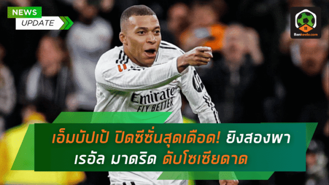 คิลิยัน เอ็มบัปเป้ ไม่ปล่อยให้ฤดูกาลแรกกับ เรอัล มาดริด จบลงแบบธรรมดา เมื่อเจ้าตัวจัดการเหมาสองประตูสุดเฉียบพา ราชันชุดขาว เปิดรังเบร์นาเบวอัด เรอัล โซเซียดาด ไปอย่างเด็ดขาด 2-0 เมื่อวันเสาร์ที่ 24 พฤษภาคมที่ผ่านมา ในเกมนัดส่งท้าย ลา ลีกา สเปน ฤดูกาล 2024/25 พร้อมเขียนชื่อไว้ในหน้าประวัติศาสตร์ของสโมสรและลีกกระทิงดุอย่างสง่างาม