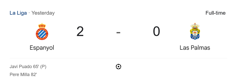 ชัยชนะเกมนี้ส่งให้ เอสปันญ่อล ขยับจบอันดับที่ 14 ของตาราง บ้านผลบอล เก็บได้ 42 แต้มจาก 38 นัด พ้นจากโซนตกชั้นอย่างปลอดภัย ส่วน ลาส พัลมาส จบฤดูกาลในอันดับ 19 มีเพียง 32 คะแนน ตกชั้นแน่นอนหลังแพ้ถึง 22 นัดในฤดูกาลนี้ เป็นบทสรุปที่โหดร้ายสำหรับทีมที่เคยสร้างเซอร์ไพรส์ในช่วงกลางซีซั่น