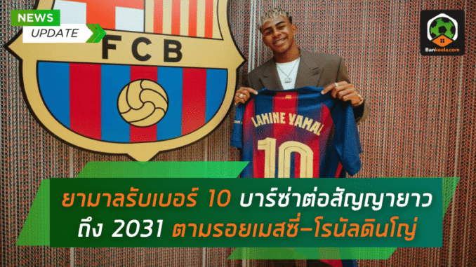 บาร์เซโลน่าประกาศข่าวใหญ่สะเทือนวงการลูกหนัง เมื่อ ลามีน ยามาล ปีกดาวรุ่งดีกรีทีมชาติสเปน ได้รับเกียรติสวมเสื้อหมายเลข 10 อันทรงเกียรติสืบต่อจากเหล่าตำนาน พร้อมเซ็นสัญญาฉบับใหม่ยาวถึงปี 2031 แสดงถึงความเชื่อมั่นเต็มเปี่ยมของสโมสรต่ออนาคตของแข้งวัยเพียง 18 ปีรายนี้