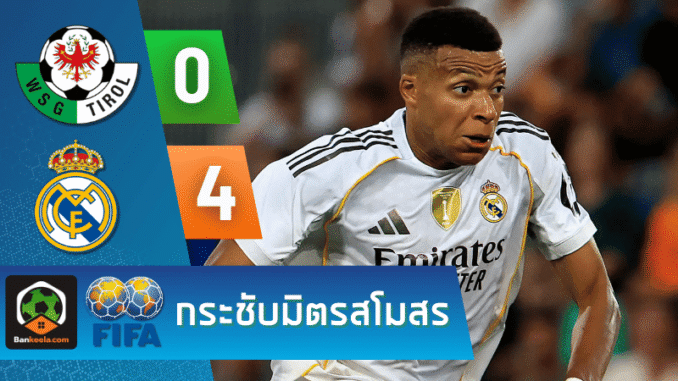 บ้านผลบอล สรุปหลังเกม ราชันชุดขาวบุกถล่ม WSG Tirol 4-0 เกมอุ่นเครื่องเหนือชั้น