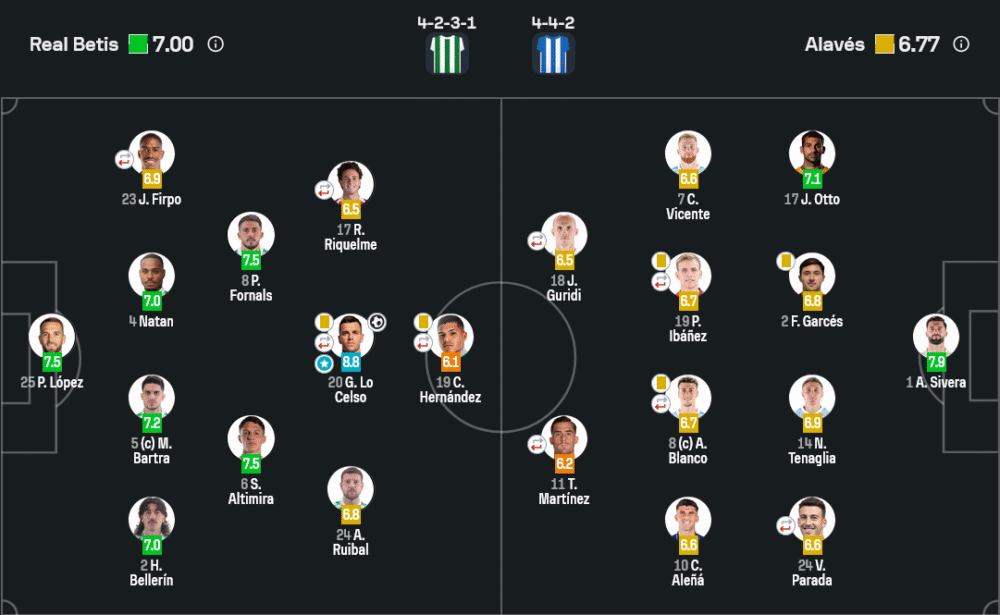 โล เซลโซ คือหัวใจสำคัญในชัยชนะครั้งนี้ ยิงประตูโทนสุดสวยและคุมเกมกลางสนามได้อย่างสมบูรณ์แบบ ได้คะแนนสูงสุด 8.8 และแสดงให้เห็นว่าเป็นตัวขับเคลื่อนเกมรุกและจังหวะเปลี่ยนเกมที่แท้จริงของเบติส