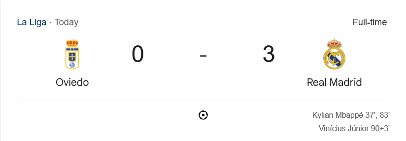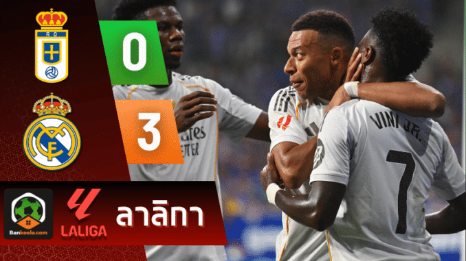 ศึกลา ลีกา สเปนเมื่อคืนนี้ แฟนบอลที่ติดตาม ผลบอลสด ได้เห็นพลังเกมรุกอันโหดเหี้ยมของ เรอัล มาดริด ที่บุกไปไล่ถล่ม เรอัล โอเบียโด 3-0 ถึงถิ่น เอสตาดิโอ คาร์ลอส ตาร์ติเอเร่ โดยมี คิลิยัน เอ็มบัปเป้ และ วินิซิอุส จูเนียร์ เป็นพระเอกหลักช่วยกันทำประตูสำคัญ พาทีมเก็บชัยชนะสองนัดติด เปิดฤดูกาลด้วยฟอร์มร้อนแรง