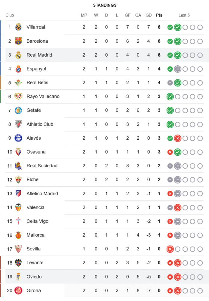 ชัยชนะเกมนี้ทำให้เรอัล มาดริดมี 6 คะแนนเต็มจาก 2 นัด ขึ้นไปอยู่อันดับ 3 ร่วมกับบาร์เซโลน่าและบียาร์เรอัล ส่วนโอเบียโดยังคงไร้แต้ม รั้งอันดับ 19 ของตาราง กดดันตั้งแต่ต้นซีซั่น