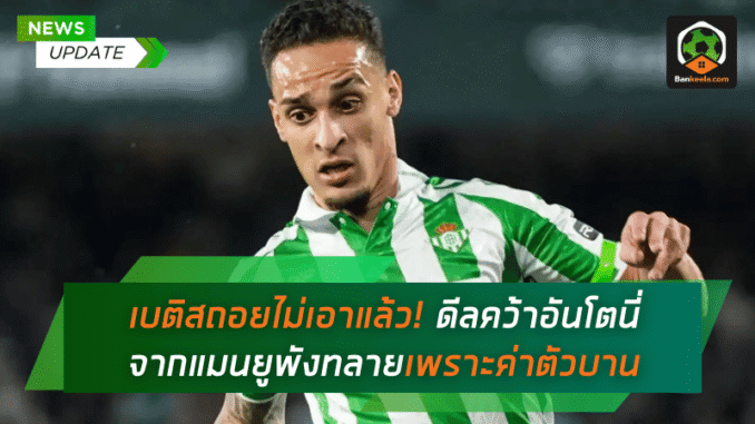 เรอัล เบติส สโมสรดังจากลาลีกา สเปน ประกาศถอนตัวจากการเจรจาคว้าตัว อันโตนี่ ปีกชาวบราซิลของ แมนเชสเตอร์ ยูไนเต็ด อย่างเป็นทางการ หลังไม่สามารถตกลงเงื่อนไขค่าตัวและโบนัสเพิ่มเติมกับ “ปีศาจแดง” ได้ ทั้งที่ก่อนหน้านี้มีรายงานว่าพร้อมทุ่มถึง 25+3 ล้านยูโร แต่สุดท้ายทุกอย่างก็ต้องล่มไป