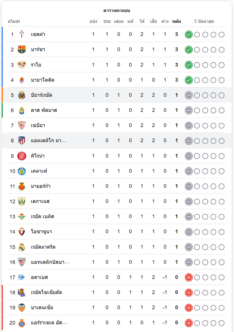 จากผลเสมอในนัดนี้ บียาร์เรอัล ขึ้นมารั้งอันดับที่ 5 ของตารางคะแนน ลาลิกา 2024 โดยมี 1 คะแนน เช่นเดียวกับ แอตเลติโก้ มาดริด ที่อยู่ในอันดับที่ 8 ซึ่งทั้งสองทีมยังคงต้องเร่งทำผลงานในนัดถัดไปเพื่อไต่อันดับขึ้นมา