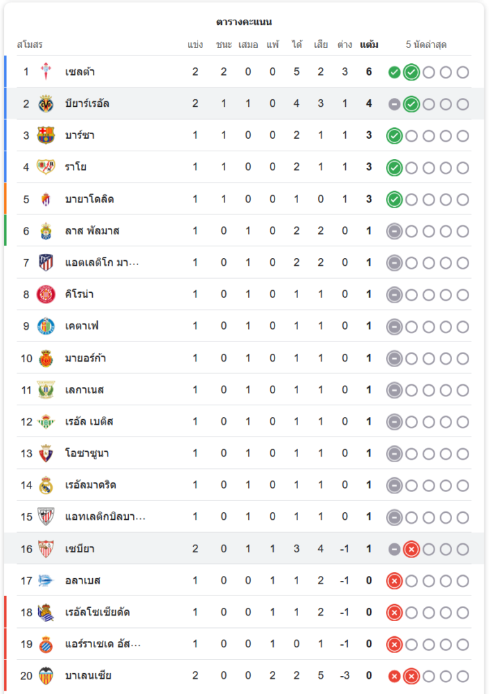 ชัยชนะในนัดนี้ทำให้ บียาร์เรอัล ขยับขึ้นมาอยู่ที่ 2 ของตารางลาลีกาด้วยการมี 4 คะแนนจากการลงเล่น 2 นัด ขณะที่ เซบีย่า ต้องพ่ายแพ้เป็นนัดที่ 2 ติดต่อกัน มีเพียง 1 คะแนนจาก 2 นัดแรก ทำให้พวกเขาต้องรีบกลับมาปรับปรุงฟอร์มการเล่นอย่างเร่งด่วนหากต้องการเก็บชัยชนะในนัดถัดไป