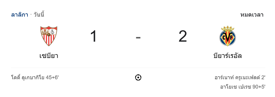 บียาร์เรอัล บุกเชือด เซบีย่า 2-1 ในศึก ลาลีกา 2024 คว้าชัยชนะนอกบ้านได้สำเร็จ