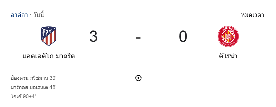 แอตเลติโก้ มาดริด เก็บชัยชนะเหนือ คิโรน่า 3-0 ในศึกลาลิกา 2024