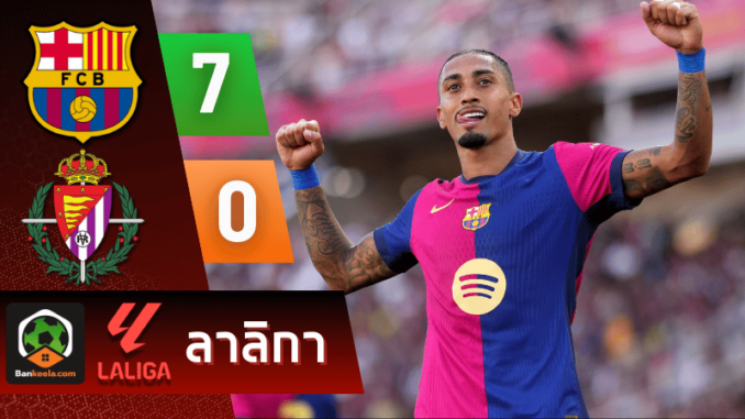 ในการแข่งขันลาลีกา 2024 นัดนี้ บาร์เซโลน่า โชว์ฟอร์มสุดยอดด้วยการถล่มเอาชนะ เรอัล บายาโดลิด ไปถึง 7-0 ที่สนามคัมป์นู ทำให้แฟนบอลในสนามและทั่วโลกต่างชื่นชมในความยอดเยี่ยมของทีมเจ้าบ้านที่สามารถทำผลงานได้โดดเด่นอย่างเหนือชั้น