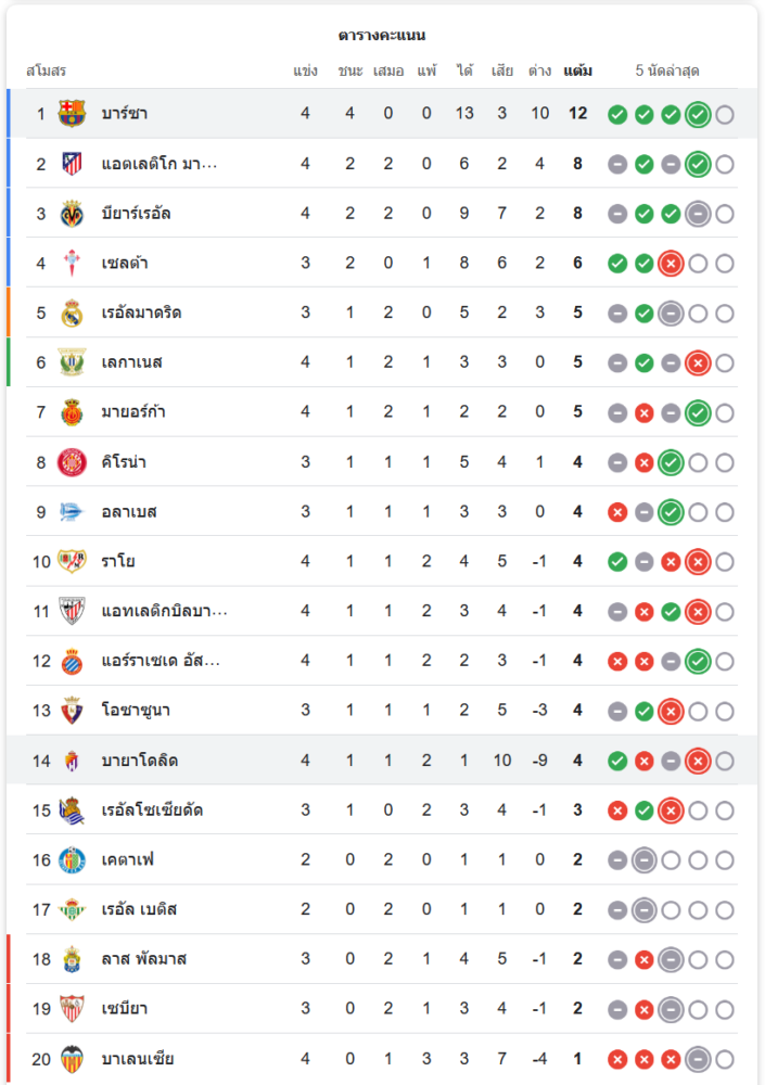 ผลจากการแข่งขันนี้ ทำให้ บาร์เซโลน่า ยังคงรั้งตำแหน่งจ่าฝูงของตารางลาลีกา ด้วยคะแนนเต็ม 12 คะแนนจาก 4 นัด แสดงถึงความแข็งแกร่งและพร้อมสำหรับการชิงแชมป์ในฤดูกาลนี้ ขณะที่ เรอัล บายาโดลิด ยังคงต้องดิ้นรนอยู่ในอันดับที่ 14 มี 4 คะแนนจาก 4 นัด การแพ้ครั้งนี้เป็นสัญญาณว่าบายาโดลิดจำเป็นต้องปรับปรุงฟอร์มการเล่นอย่างเร่งด่วน