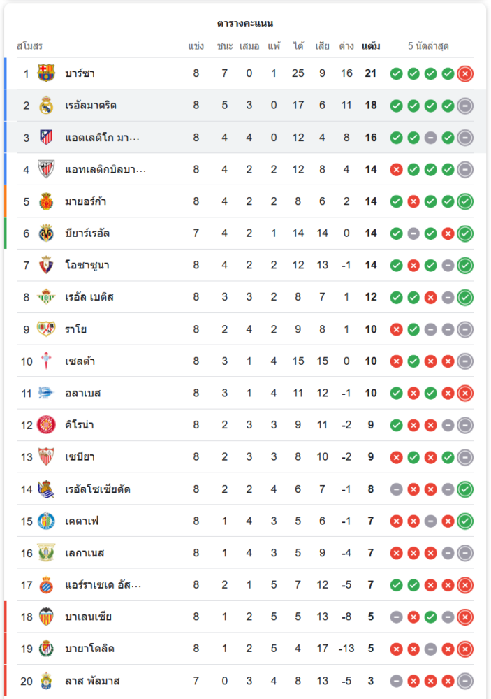- 90+9′: มาร์กอส ยอเรนเต้ (แอตเลติโก้ มาดริด) ได้รับใบแดงหลัง VAR เปลี่ยนการตัดสินจากใบเหลืองเป็นใบแดง