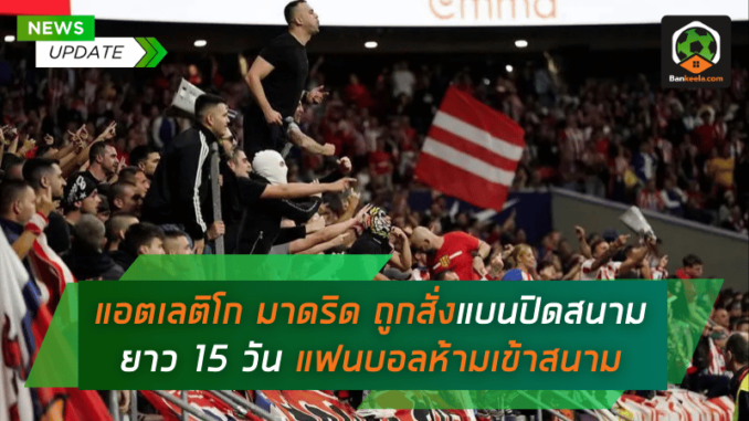 แอตเลติโก มาดริด ทีมดังจากศึก ลาลีกา สเปน เจอกับบทลงโทษอย่างหนัก หลังจากแฟนบอลสร้างความวุ่นวายในการแข่งขันดาร์บี้แมตช์ จนทำให้สโมสรต้องเจอคำสั่งแบนปิดสนามนานถึง 15 วัน! สาวกตราหมีคงต้องรับรู้ข่าวร้ายนี้อย่างใจหาย เมื่อทีมของพวกเขาถูกบังคับให้เล่นในสนามปิด และแฟนบอลจะไม่ได้เข้าสนามในช่วงเวลาสำคัญนี้