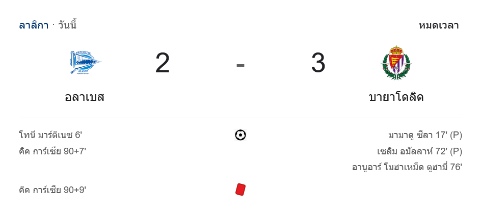 - 🟥 90+9′ คิค การ์เซีย (อลาเบส) โดนใบแดง